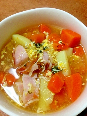 じゃがいも玉ねぎ人参ハムのコンソメスープ レシピ 作り方 By Hideok8 楽天レシピ